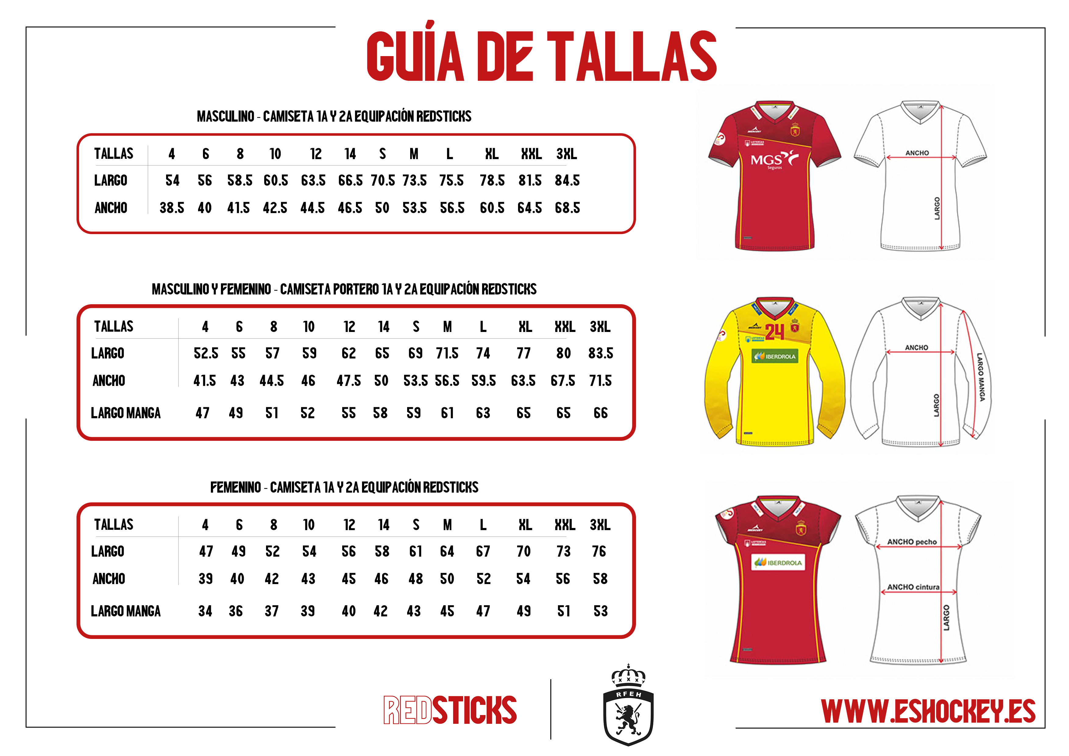 Pack Completo de la Primera Equipación de la Selección Española Masculina de Hockey Hierba.