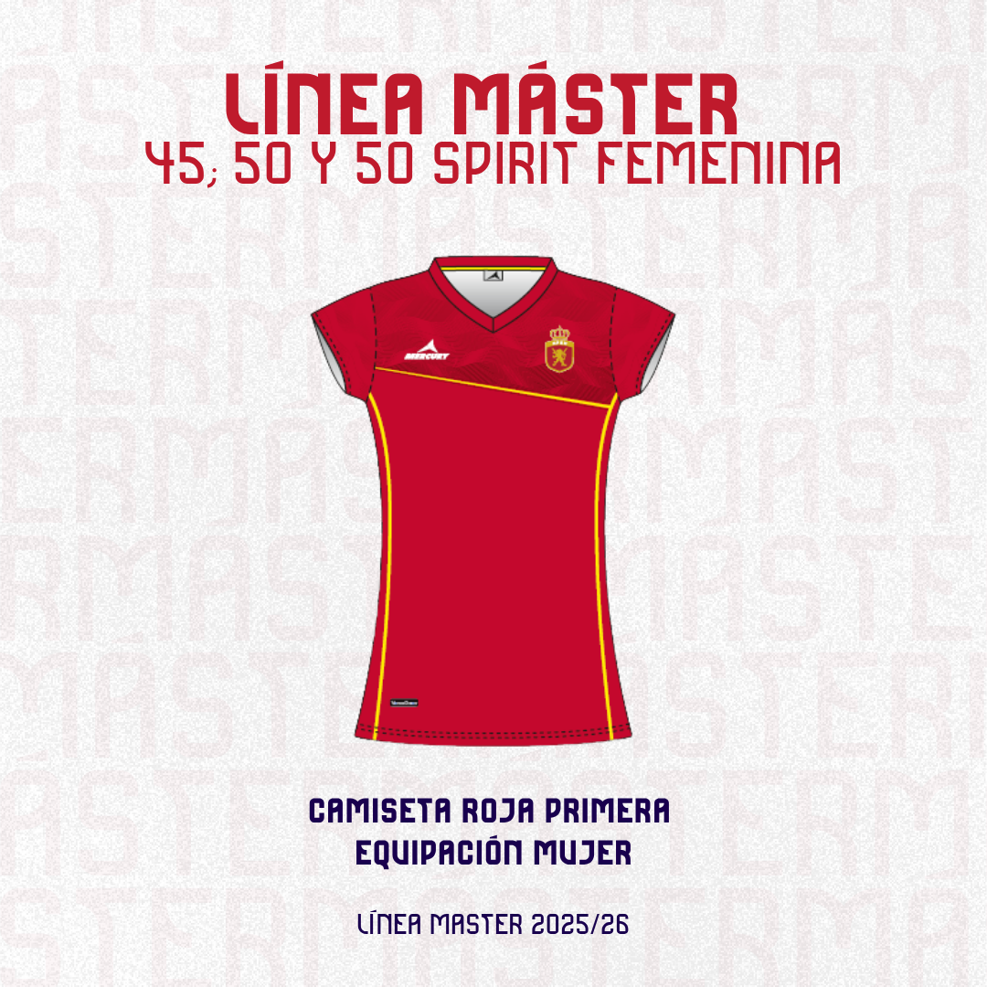 La camiseta oficial de los RedMaster está diseñada exclusivamente para las jugadoras de la categoría Máster que continúan compitiendo con ambición, experiencia y orgullo de pertenencia.