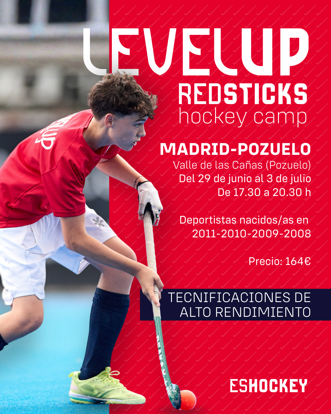 El Campus LevelUP de Hockey España es un programa oficial de tecnificación para jugadores y jugadoras de 13 a 17 años que quieren mejorar su nivel y entrenar con metodología profesional. Cinco días de trabajo intensivo junto a entrenadores de primer nivel y un/a jugador/a RedSticks. Del 29 de junio al 3 de julio en Madrid-Pozuelo. Plazas muy limitadas (30 jugadorxs y 3 reservadas a porterxs).