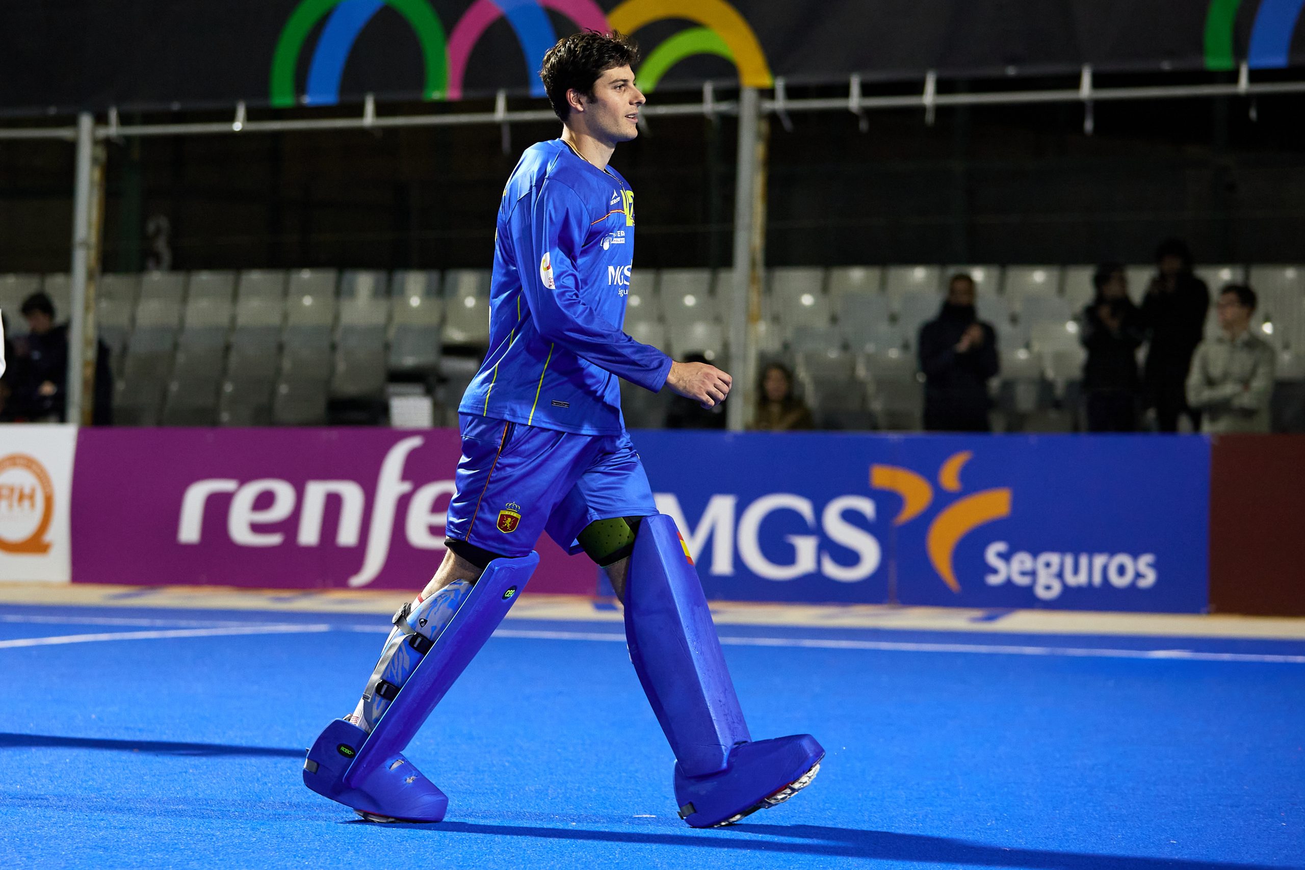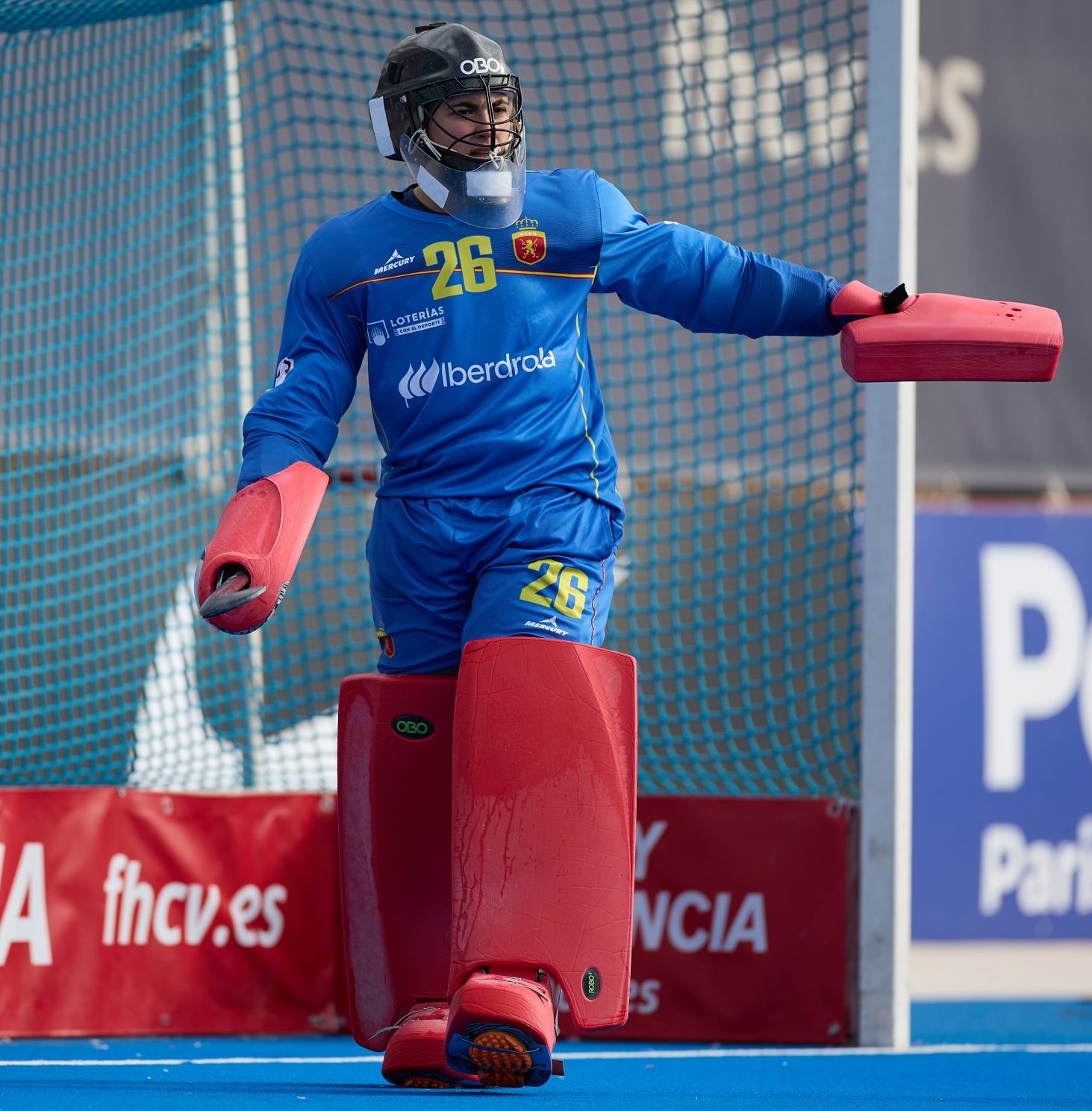 Pantalón Unisex de Portero/a Oficial Mercury en color azul de la Selección Española de Hockey Hierba.