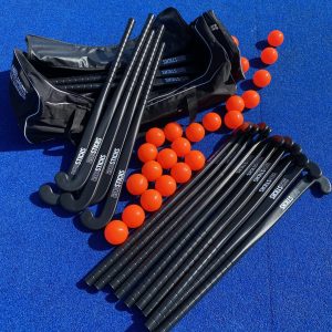 • Primera equipación completa de las redsticks, compuesta de la camiseta, falda y medias en color rojo de la marca mercury de hockey hierba